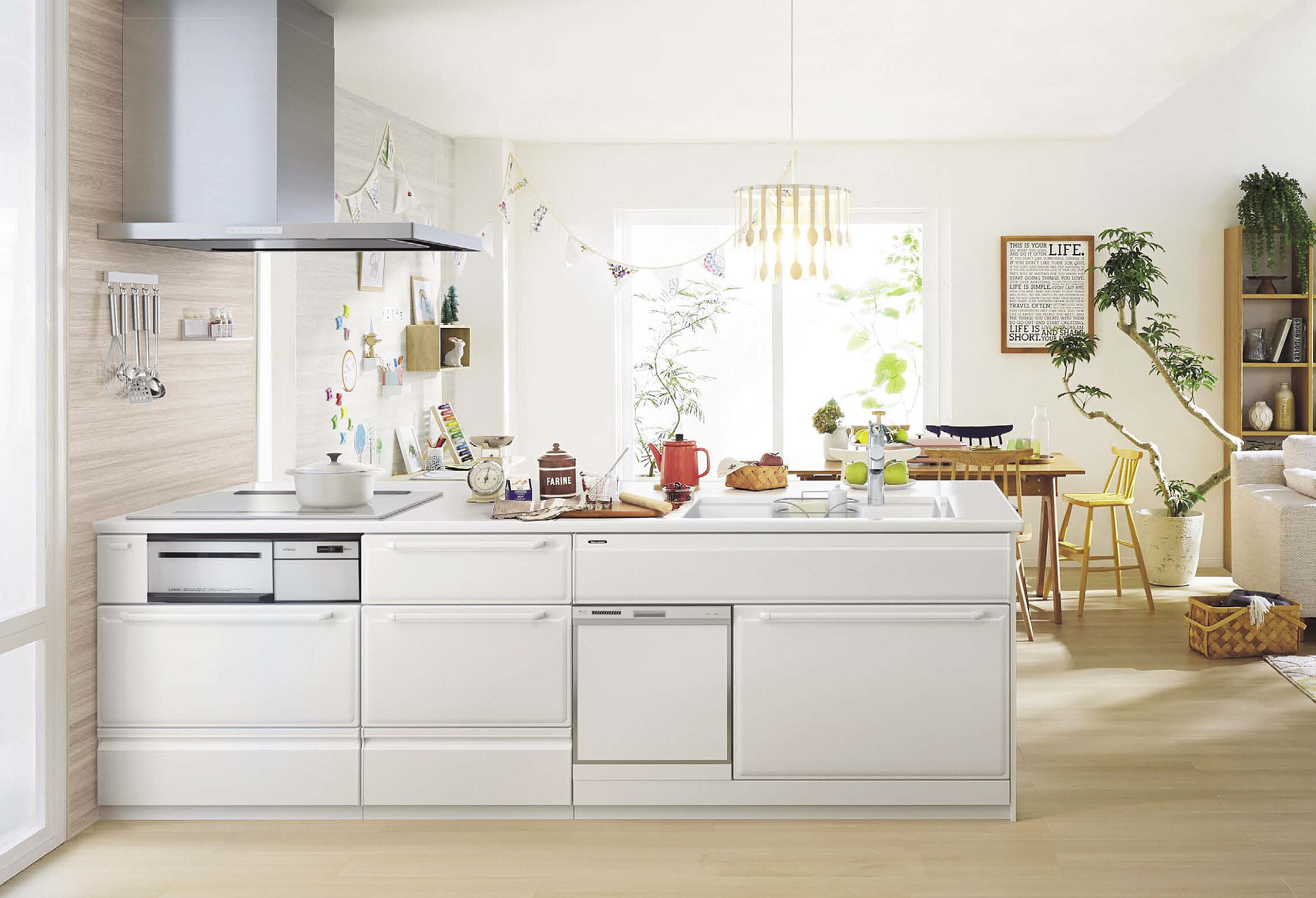 また、扉カラー・引手デザイン・ワークトップカラーの色・デザインを自由に選ぶことができるため、機能・デザインともに妥協のない理想のシステムキッチンを作ることが可能です。