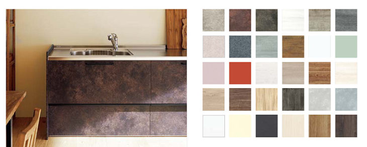 人気の木目調だけでもかなりの種類から選ぶことができますし、ビンテージな仕上がりが魅力のおしゃれなキッチンを演出してくれますよ^^