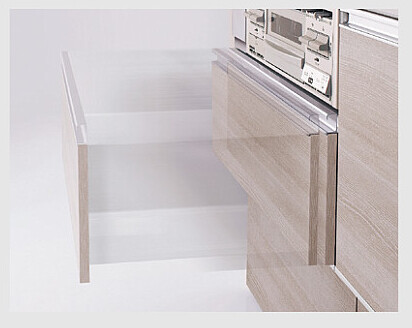 ベースキャビネットの引き出しは、サイレントレールによって衝撃が抑えられ静かに閉まるため安全です。引き出しの奥行きがすべてなめらかに引き出されるため、出し入れがスムーズに行えます。「ラクエラ」のここがおすすめ!