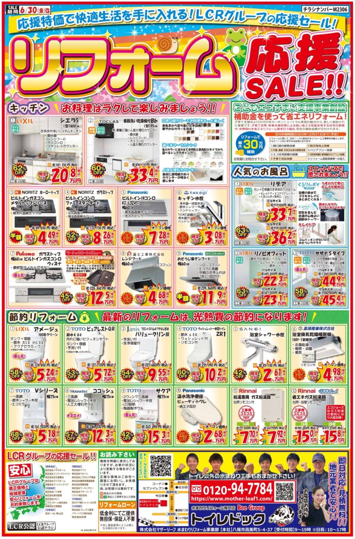 お問い合わせお見積もり お問い合わせ お見積もり LINE相談 HOMEイベント情報最新チラシ情報リフォーム応援SAEL!! 6/1~6/30 リフォーム応援SAEL!! 6/1~6/30(終了しました) 【6月のチラシ】リフォーム応援SALE! どこからともなく、くちなしの香がただよってくるころとなりました、お変わりなくお過ごしですか。 そろそろ梅雨入りが近いようですが、梅雨の前にリフォームしませんか。 お見積り無料です。お問い合わせお待ちしております。 限定商品はなくなり次第終了‼数に限りがございますのでお早めにご連絡ください。(商品によりましては、工事着工までお時間を頂戴する可能性がございます。) まずはお電話で現状をご相談ください! 0120-94-7784 【受付】9:00~18:00【定休日】日曜・祝日 メールから問い合わせる 最新チラシ情報一覧はこちら イベント情報一覧はこちら 水回り専門店トイレドックについて 選ばれる理由 会社案内代表挨拶会社概要中小企業庁 事業計画強化計画アクセスマップ リフォームメニュー リフォームメニュー一覧 トイレ エコキュート 給湯器 コンロ 換気扇(レンジフード) キッチン システムバス 洗面化粧台 施工事例 施工事例一覧 トイレのリフォーム・ 便器交換 洗面化粧台の リフォーム交換 キッチン・台所の リフォーム交換 風呂・浴室・ユニットバスの リフォーム交換 内装リフォーム(壁紙の張替え、床・フローリングの 張替え) 家のお困りごと 修理・補修 外壁塗装リフォーム ・外壁工事 お客様の声 お客様の声一覧 お役立ち情報 スタッフブログ LINE簡単見積もり イベント情報 ワーキング・ビー 総合リフォームサイト 屋根外壁のワーキング・ビー お問い合わせ お問い合わせ 無料お見積もり お問い合わせはこちら お見積もりはこちら トップへ戻る ホーム 会社案内 選ばれる理由 会社案内代表挨拶会社概要中小企業庁 事業計画強化計画アクセスマップ リフォームメニュー リフォームメニュー一覧 トイレ エコキュート 給湯器 コンロ 換気扇(レンジフード) キッチン システムバス 洗面化粧台 施工事例 施工事例一覧 トイレのリフォーム・ 便器交換 洗面化粧台の リフォーム交換 キッチン・台所の リフォーム交換 風呂・浴室・ユニットバスの リフォーム交換 内装リフォーム(壁紙の張替え、床・フローリングの 張替え) 家のお困りごと 修理・補修 外壁塗装リフォーム ・外壁工事 お客様の声 お客様の声一覧 お役立ち情報 スタッフブログLINE簡単見積もりイベント情報ワーキング・ビー 総合リフォームサイト屋根外壁のワーキング・ビー お問い合わせ お問い合わせ無料お見積もり © 2022 株式会社マザーリーフ