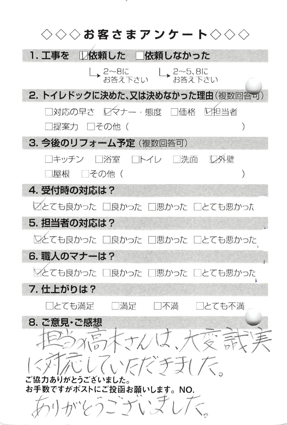 担当の高木さんは大変誠実に対応していただきました。ありがとうございました。